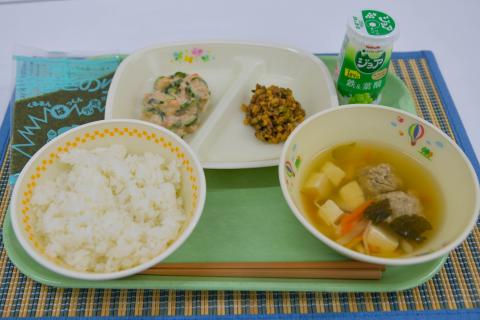 また、豆まきをして鬼を追いはらい、福を呼び込むという行事もあります。煎った大豆を年の数だけ食べたり、恵方巻きを食べたりします。今日は手巻きずしです。具材は、大豆からできた納豆を使った「納豆みそ」と「ツナサラダ」です。今年一年の健康と幸せを願って食べましょう。
