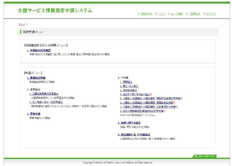 厚生労働省では、介護サービスに係る指定及び報酬請求に関する申請届出について、電子申請・届出システム(以下「本システム」という)の運用を開始しています。