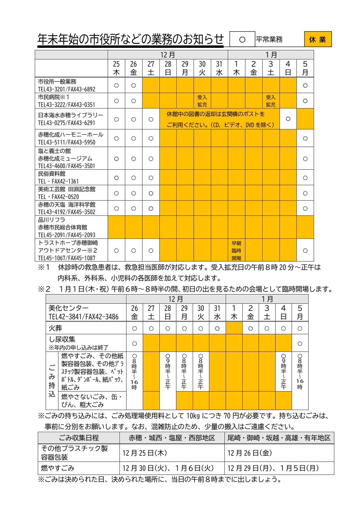 ホーム > 市政情報 > 広報 > 広報紙 > 年末年始の市役所などの業務のお知らせ